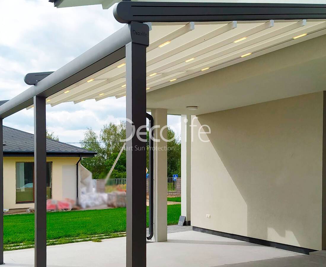 Пергола Decolife Bioclimatic B700-25П + Раздвижное остекление S150 - г. Домодедово