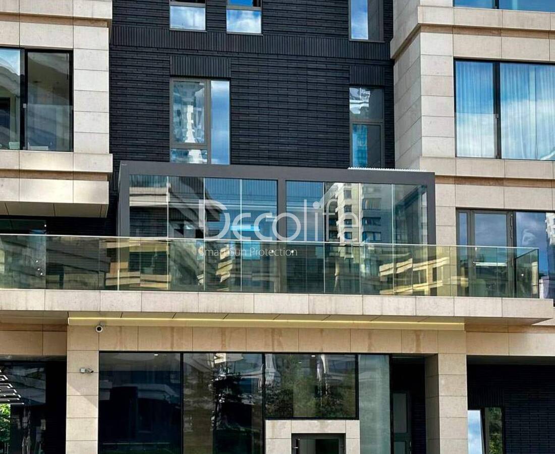 Пергола Decolife Bioclimatic B500-20C + Раздвижное остекление S100 + Фасадные жалюзи FZ44, реализовано партнером "ООО Люкс Террас" - г. Москва, Озерковская набережная