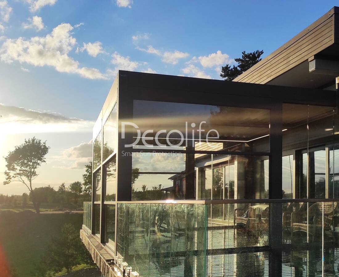 Пергола Decolife B600 PIR + Панорамное остекление S500, реализовано партнером "ООО Люкс Террас" - г. Москва